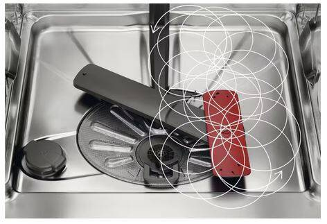 Wybierz idealną jakość zmywania, jaką zapewnia system SatelliteClean®. To ramię spryskujące działa trzykrotnie skuteczniej niż standardowe. Jest to możliwe dzięki podwójnej rotacji, która powoduje ciągłe zmiany kąta spryskiwania. W ten sposób woda dociera do każdego zakątka zmywarki, zapewniając dokładne zmywanie.