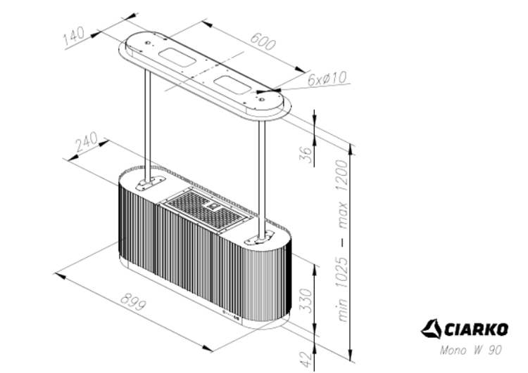 Okap wyspowy Ciarko Design MONO W Black/Black pochłaniacz