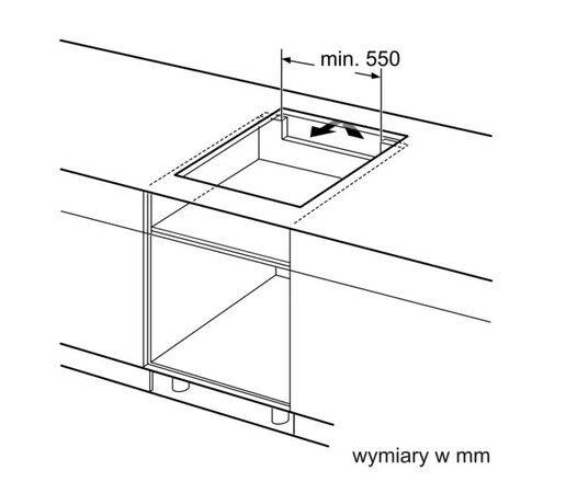 - Wymiar montażowy wnęki dla urządzeń do montażu na równi z blatem 56 x 576 x 516 mm
