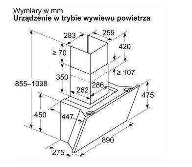 - Wysokość minimalna urządzenia obieg otwarty 855 mm