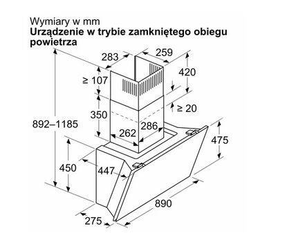 - Wysokość minimalna urządzenia obieg zamknięty 892 mm