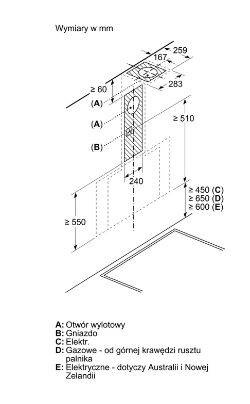 - Minimalna odległość od płyty elektrycznej 450 mm