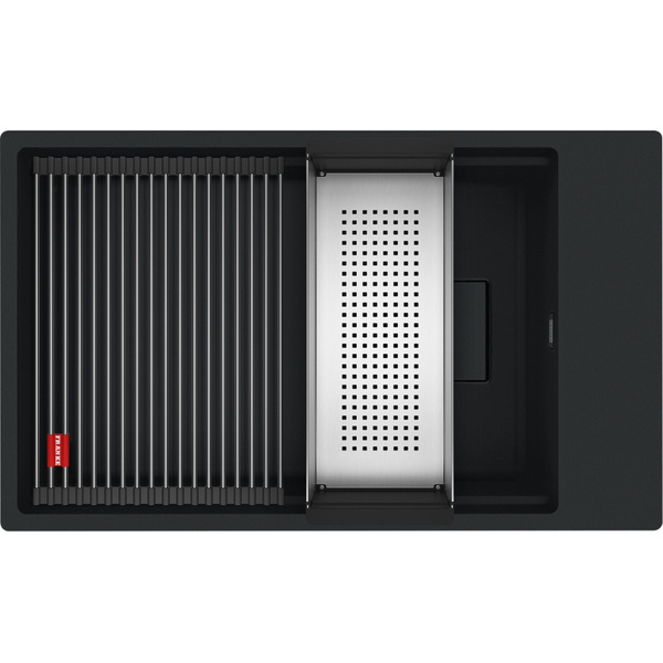 Komora do podbudowy z linii Kanon KNG 110-62 w zestawie zawiera wkładę ociekową i rollmatę oraz korek automatyczny Flow Pro, sterowany przyciskiem Easy Click w wykończeniu czarny mat. Dzięki specjalnie zaprojektowanej krawędzi wewnętrznej, można komfortowo korzystać z akcesoriów na dwóch poziomach pracy. Zlewozmywak wyprodukowany jest z materiału Fragranite, którego bazą jest naturalny granit.Dzięki zastosowaniu bardzo drobnych cząsteczek tego materiału, uzyskano zlewozmywak idealnie gładki i delikatny w dotyku. Wszystkie zlewozmywaki fragranitowe FRANKE, wyprodukowane są z wykorzystaniem technologii Sanitized®, ograniczającej rozwój bakterii do 99%. Wszystkie zlewozmywaki z Fragranite są odporne na zarysowania, uderzenia i zaplamienie, a ich kolor nie zmienia się z upływem czasu. Są również odporne na krótkotrwałe działanie wysokiej temperatury (do 280°C przez 15 sek.).