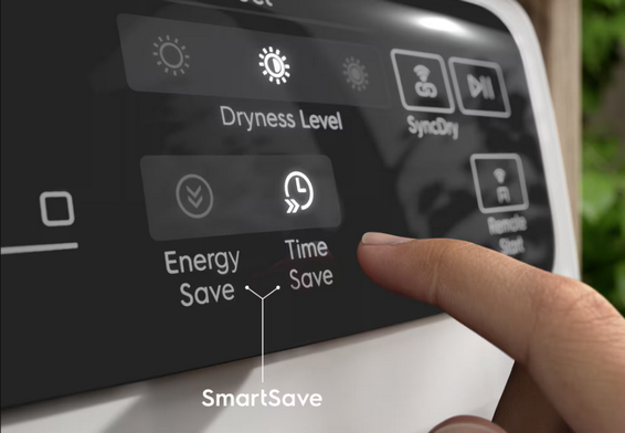 SmartSave to najnowsza opcja suszenia. Można wybrać oszczędność czasu lub energii i skrócić suszenie nawet o 50 min, ewentualnie oszczędzić do 20% energii*. Szybka i skuteczna funkcja, którą włącza się przed uruchomieniem suszenia wsadu. Najnowocześniejsza technologia poprawy wydajności.