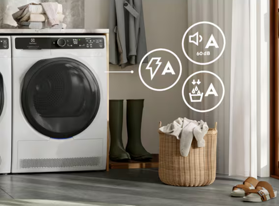 Suszarki klasy A: klasa A pod względem zużycia energii, klasa A pod względem poziomu hałasu i klasa A pod względem wydajności kondensacji. Ciesz się oszczędnością energii, większym spokojem i ciszą oraz mniejszą wilgotnością w pomieszczeniu podczas suszenia ubrań.