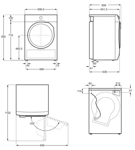 Położenie i pojemność zbiornika kondensacyjnego: po lewej, 5.56 l