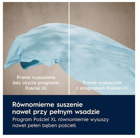 Rodzinny program Bedlinen XL zapewnia równomierne suszenie dużych załadunków, w tym kompletów pościeli, bez konieczności ponownego uruchamiania suszarki.
