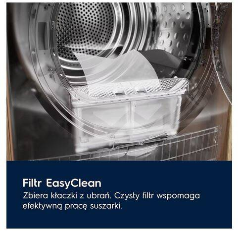 Filtr EasyClean jest łatwy w czyszczeniu i zapewnia optymalną pracę pralki, pomagając utrzymać efektywność energetyczną.