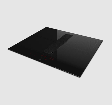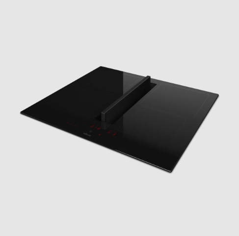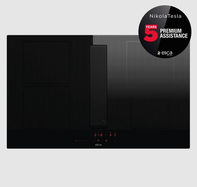 Płyta z wbudowanym okapem o szerokości 83cm. Idealnie dopasuje się zarówno do przestronnych kuchni, otwartych na salon, jak i bardziej kompaktowych stref gotowania. Wyrafinowany motyw graficzny na powierzchni płyty skrywa wysokowydajny system wyciągowy, który może być uruchamiany przez dotknięcie centralnej klapki.