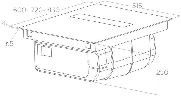 - Wyrafinowany motyw graficzny na powierzchni płyty skrywa wysokowydajny system wyciągowy, który może być uruchamiany przez dotknięcie centralnej klapki.