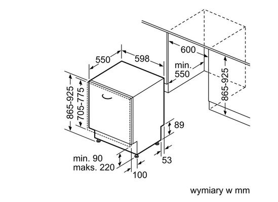 - Wymiary urządzenia (mm) 865 x 598 x 550 mm