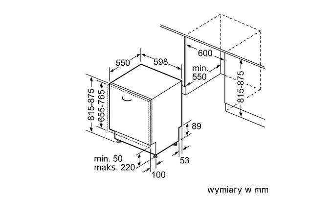 • Minimalna szerokość instalacyjna (mm) 600 mm