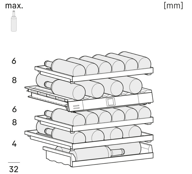 | Maksymalna liczba butelek typu Bordeaux o poj. 0,75 l | 32 |