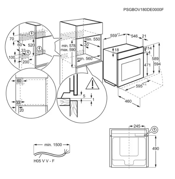 Drzwi piekarnika/temp. frontu powyżej temp. otoczenia [°C]: 3 szyby/30