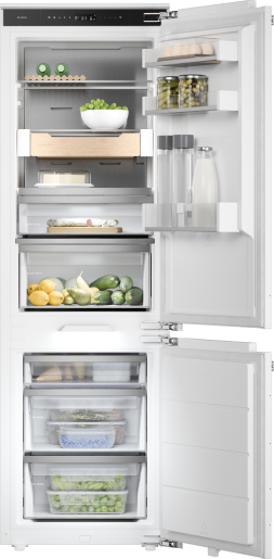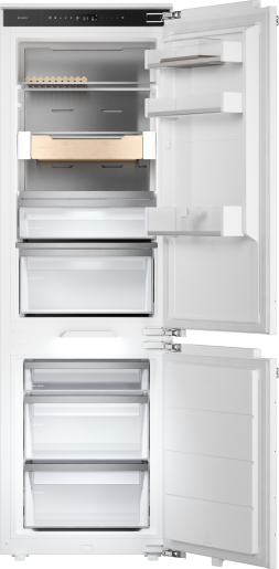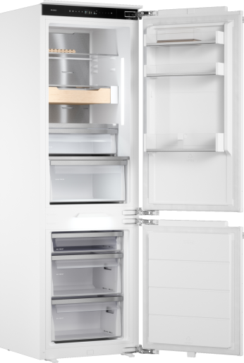 Chłodziarko-zamrażarka do zabudowy, wyposażona jest w przejrzysty i łatwy w obsłudze, kolorowy wyświetlacz dotykowy oraz połączenie Wi-Fi do aplikacji ConnectLife. Unikalne szuflady Dura Fresh mają indywidualną kontrolę temperatury i automatyczną kontrolę wilgotności, co tworzy idealne warunki dla świeżej żywności. Szuflady w lodówce i zamrażarce łatwo przesuwają się na teleskopowych szynach, a zamrażarka ma funkcję No Frost, która eliminuje potrzebę rozmrażania.