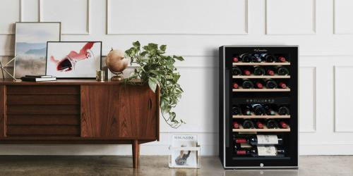 Winiarka wolnostojąca ECS31.2Z. Dwustrefowa o pojemności do 29 butelek wina.