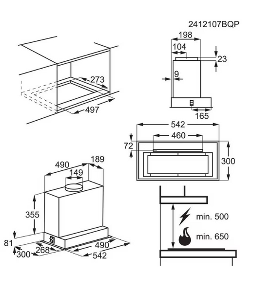 Min. odległość od powierzchni płyty elektrycznej [cm]: 50