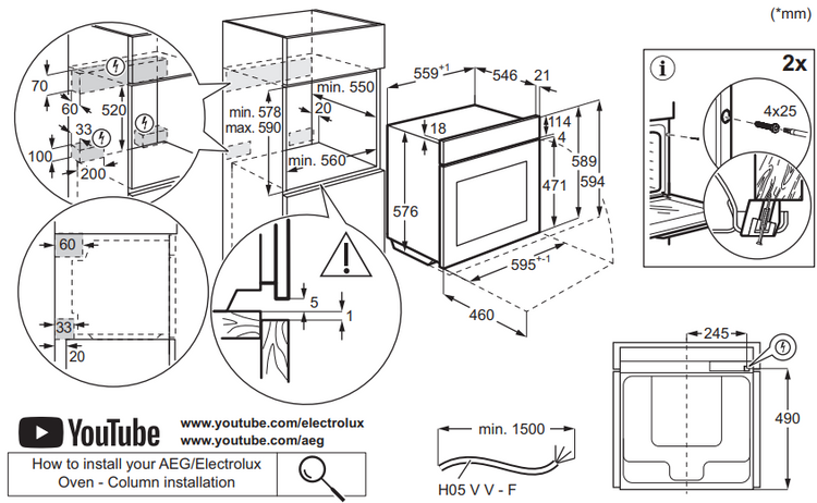 Wymiary w zabudowie (W x S x G) [mm]: 590x560x550