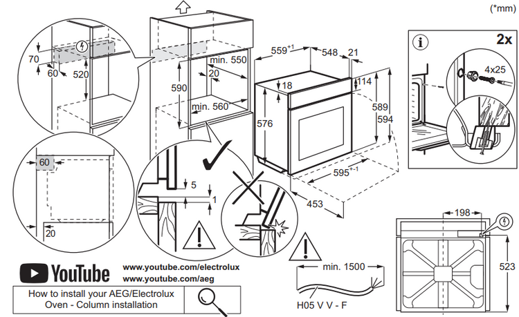 Wymiary w zabudowie (W x S x G) [mm]: 590x560x550