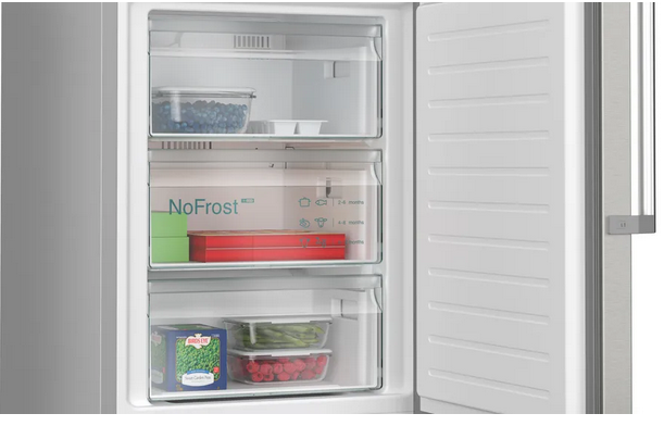 iQ500 Lodówka z dolnym zamrażalnikiem wolnostojąca 203 x 60 cm Stal szczotkowana z powłoką antiFingerprint, Total noFrost