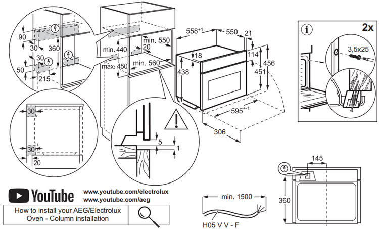Wymiary w zabudowie (W x S x G) [mm]: 450x560x550