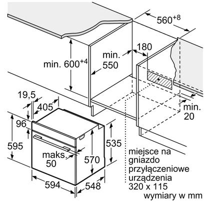 - Wymiary urządzenia (WxSxG): 595x594x548 mm
