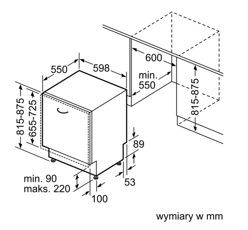 - Wymiary urządzenia (mm): 815 x 598 x 550 mm