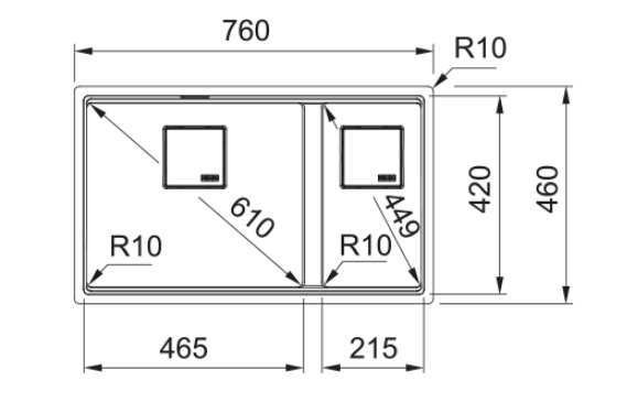 - Wymiar zewnętrzny: przód - tył 460 mm