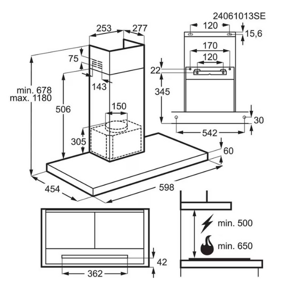 Min. odległość od powierzchni płyty elektrycznej [cm]: 50