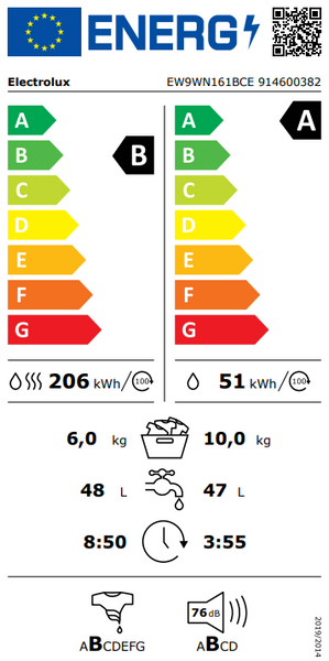 Efektywność energetyczna dla cyklu prania i suszenia (UE 2017/1369): B