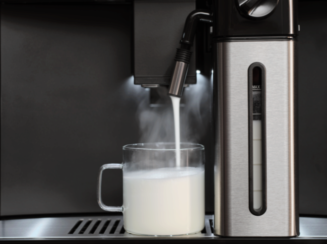 Pojemnik na mleko sprawia, że przechowywane mleko dłużej zachowuje świeżość. Ułatwia też dopasowanie gęstości piany do osobistych preferencji.