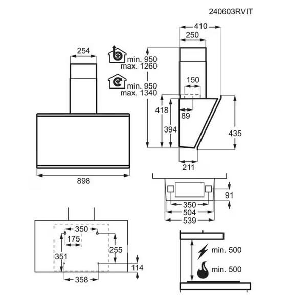 Rodzaj instalacji: kominowy, szerokość: 90 cm
