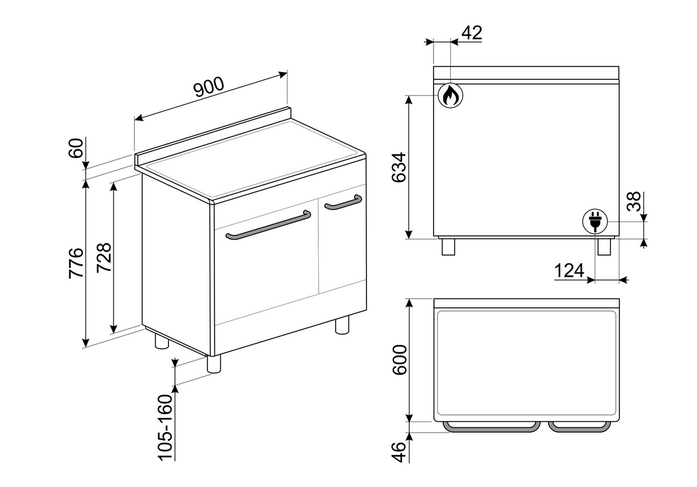 Kuchnia wolnostojąca z płytą gazową Smeg CX92GM