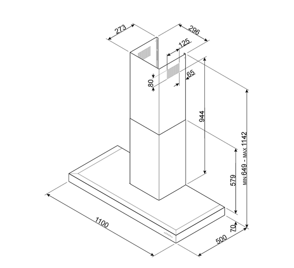- Minimalna odległość od płyty elektrycznej: 650 mm