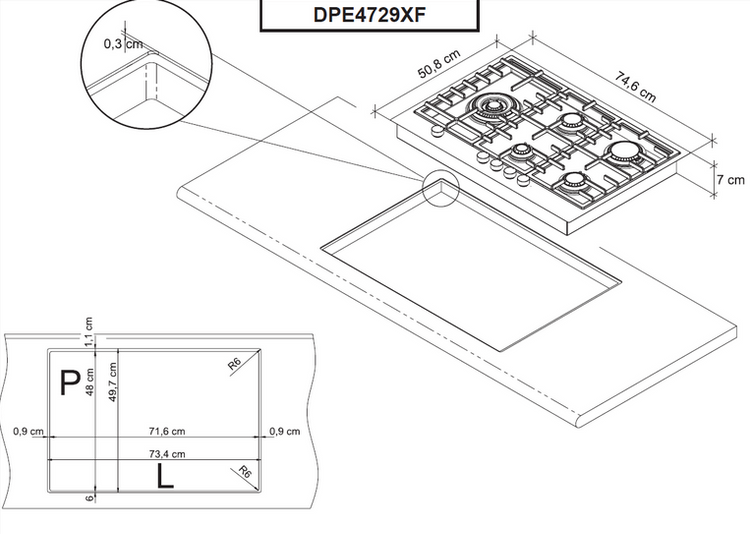 Płyta gazowa De Dietrich DPE4729XF 75 cm stal nierdzewna