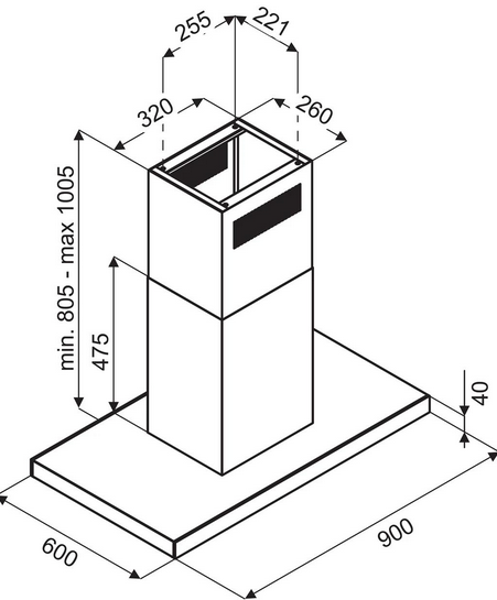 - Maksymalna moc wyciągu: 680 m3/h