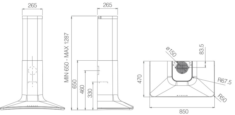 - Minimalna wysokość montażu nad płytą gazową: 70cm