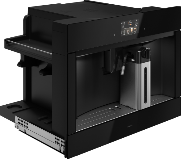 - Komfortowe przesuwanie na teleskopowych prowadnicach dla łatwego napełniania ziaren kawy: Tak