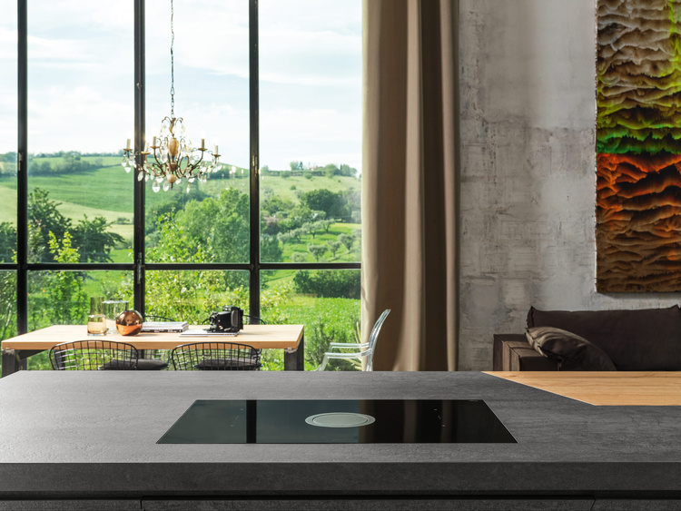 Indukcyjna płyta kuchenna z wbudowanym mechanizmem pochłaniania oparów. Aktywuje się tylko jednym gestem, filtruje i oczyszcza powietrze.