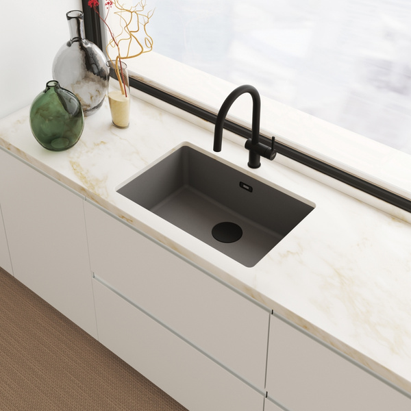 • Zlewozmywak do podbudowy Maris MRG 110-62 został wyposażony w czarny, matowy odpływ, co nada Twojej kuchni głębi i elegancji, podkreślając jej wyjątkowy charakter.