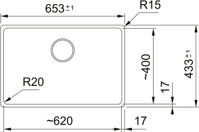 • Wymiar zewnętrzny: przód - tył 433 mm