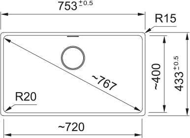 • Wymiar zewnętrzny: lewa-prawa 753 mm