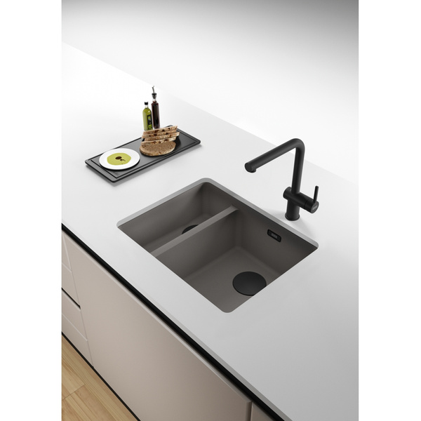 • Zlewozmywak do podbudowy Maris MRG 160-34-15 został wyposażony w czarny, matowy odpływ, co nada Twojej kuchni głębi i elegancji, podkreślając jej wyjątkowy charakter.