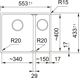 - Wymiar zewnętrzny: lewa-prawa 553 mm