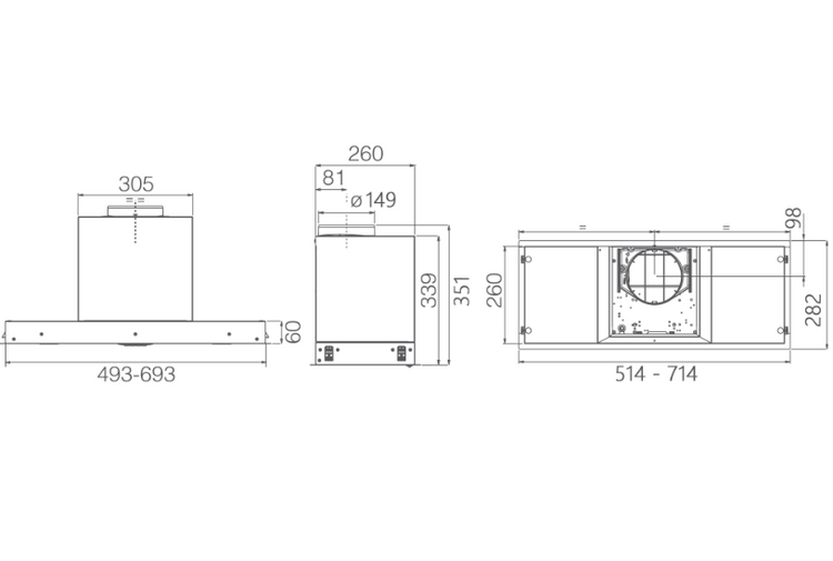 - Minimalna wysokość montażu nad płytą gazową: 57cm