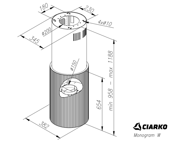- Wymiary (wys. × szer. × głęb.): 958-1188 x Ø382 mm