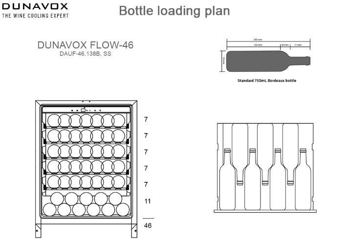 - Pojemność - ilość butelek (butelka Bordeaux 0,75 litra) 46