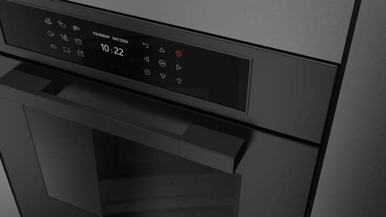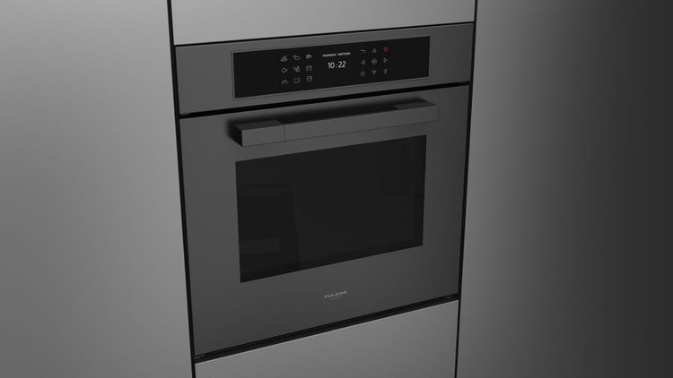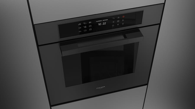 Wielofunkcyjny piekarnik do zabudowy z funkcją gotowania na parze w czarnym kolorze matowym z linii wzorniczej Urbantech Touch. Wymiary, proporcje, wykończenie oraz charakterystyczny, elegancki czarny, matowy uchwyt pozwalają na zestawienie go z innymi urządzeniami Fulgor Milano z tej samej linii. Piekarnik parowy Urbantech Touch jest pełnowymiarowym tego typu urządzeniem o pojemności 65 l., w którym można gotować różne rodzaje potraw. Funkcja gotowania na parze umożliwia przygotowywanie lżejszych posiłków, zachowując jednocześnie właściwości odżywcze żywności. Ten model zapewnia do 3 godzin ciągłego gotowania na parze z możliwością uzupełniania zbiornika na wodę bez otwierania piekarnika. Ponadto, posiada funkcję wyrastania ciasta i klasyczną funkcję pizzy. Produkt jest również wyposażony w funkcję AirFry, dzięki której można cieszyć się jeszcze bardziej smaczniejszymi i chrupiącymi potrawami.