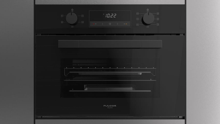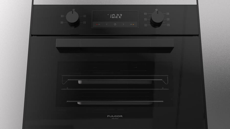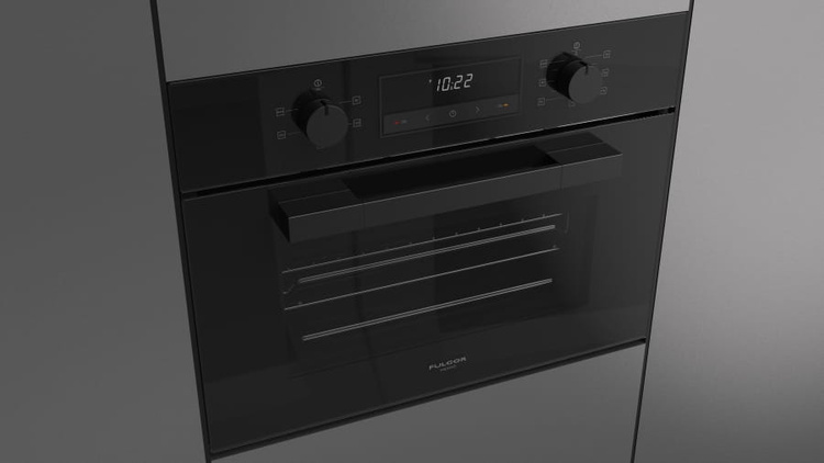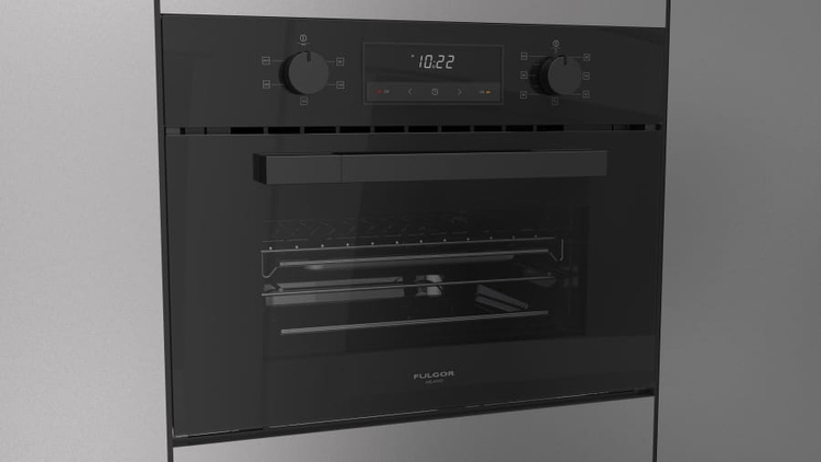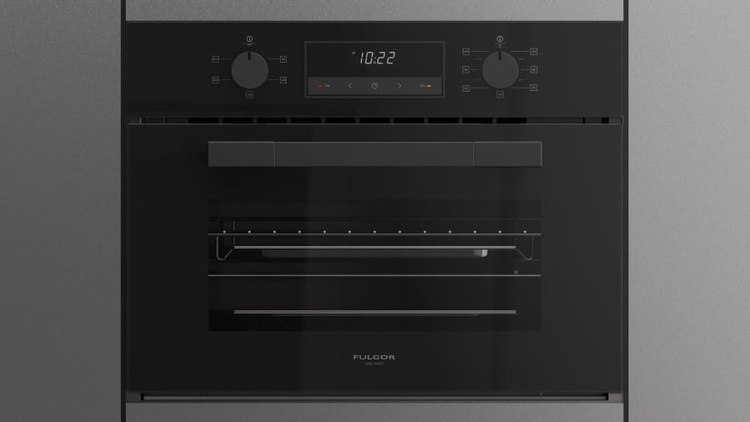 Parownica kompaktowa do zabudowy z funkcją grilla Urbantech Fulgor Milano, czarne szkło