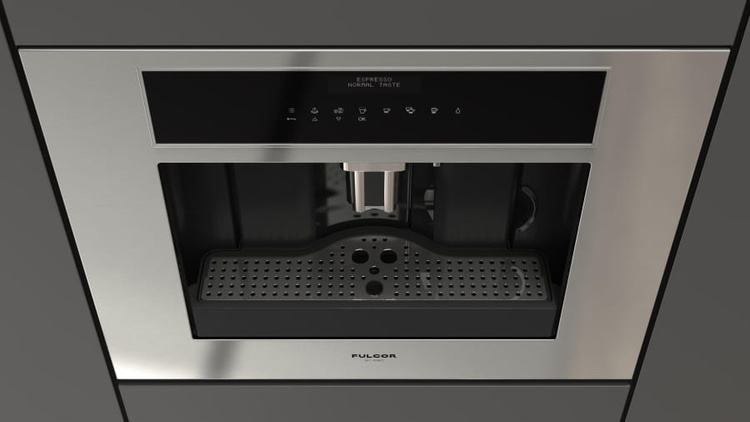 Nasz wbudowany ekspres do kawy będzie Twoim baristą w domu: po wybraniu rodzaju kawy, automatycznie miele ziarna, formuje pastylkę i pod ciśnieniem przepuszcza przez nią gorącą wodę, a zużyta kawa trafia do specjalnego pojemnika. Ciesz się kawą w stylu baristy, od espresso po cappuccino, lub swoją ulubioną amerykańską za jednym naciśnięciem przycisku, w zaciszu własnego domu. To łatwe w obsłudze, wyprodukowane we Włoszech urządzenie o profesjonalnej jakości jest idealnym towarzyszem produktów kuchennych Fulgor Milano. Dzięki czarnemu, matowemu wykończeniu idelanie pasuje do innych urządzeń do zabudowy tej linii.